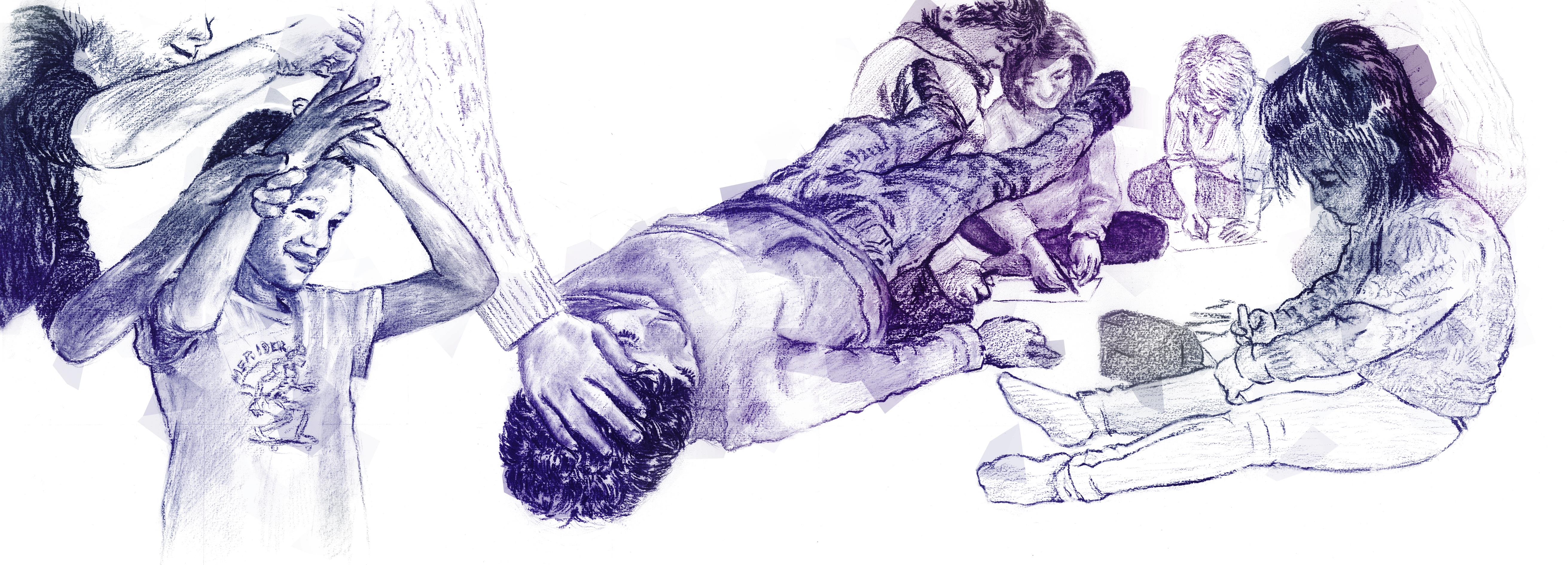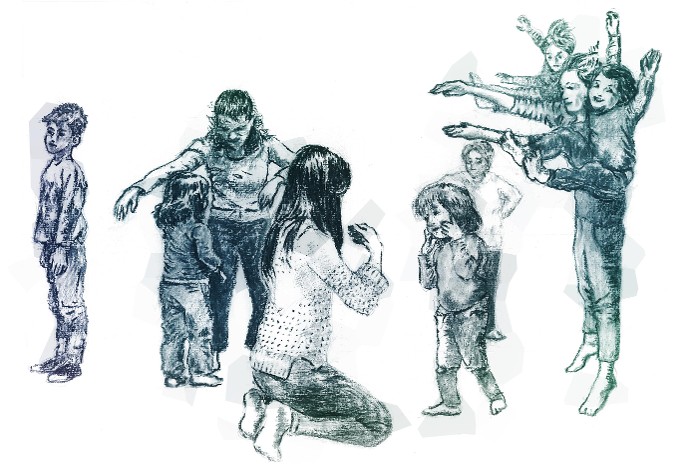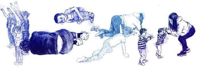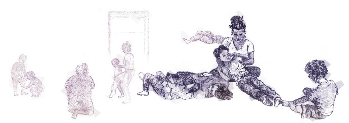 Croquis, réalisés par le chorégraphe de la compagnie, Pierre Pontvianne.